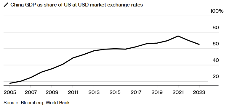 Oddities and caveats aside, this proclamation has introduced a concept to the mainstream. There is a school of thought among China watchers that 2018-2021 was perhaps ‘Peak China’ without us realizing it at the time. As it suggests, this was when China was relatively ahead of the world in not just economic growth, but also consumer confidence, social stability, and advancements in technological applications. This is when China was economically closest to reaching the US (nearly touching 80% the size of the US economy in 2021) before the gulf expanded again. This would also be before climate and demographic issues are expected to hit China the hardest.